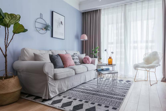 88平米的空間做簡單的設計,小清新的色調搭配讓人進門如沐春風,簡單干凈,帶點文藝小清新的格局,讓人第一眼就能從心底生出喜歡的感覺。