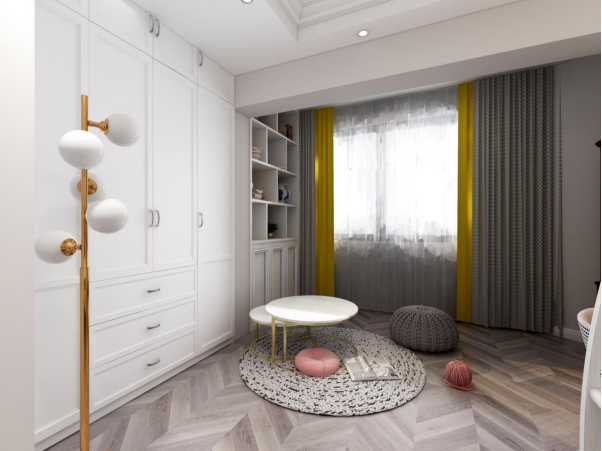給孩子留有足夠的玩耍和親自互動區,落地燈是泡泡組合成的。讓我們想起童年大家一起吹泡泡的時候。