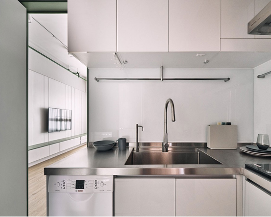 廚房的簡約設計,整體櫥柜使廚房的收納空間大大提高,可以隨時保持整潔干凈。