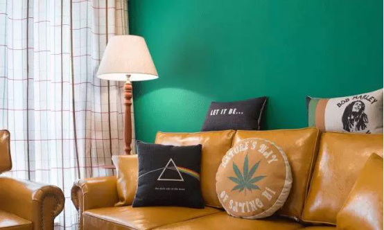 高級的配色會(huì)讓房間質(zhì)感提高好幾個(gè)檔次哦。墨綠色干凈大膽,很有沖擊力,無可厚非地成為客廳的亮點(diǎn)。