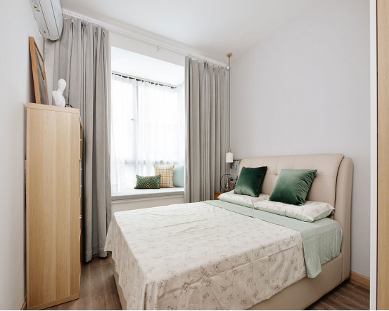 次臥采用主臥+飄窗的設(shè)計(jì),以白色與原木色為主打色,有松軟的大床,舒適的大飄窗非常完美~