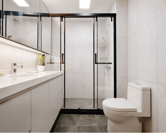 衛(wèi)生間采用干濕分離,白色與黑色系搭配也是時(shí)尚感十足。