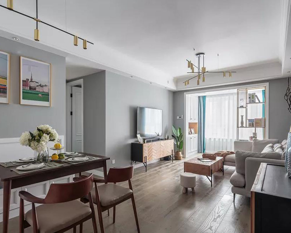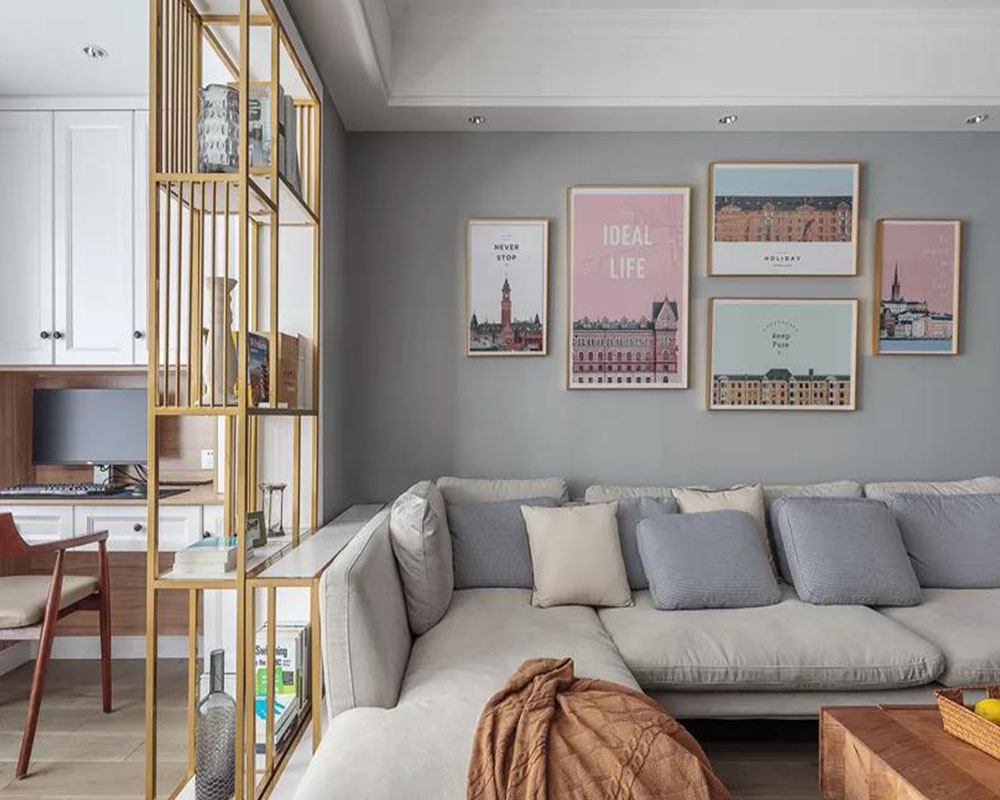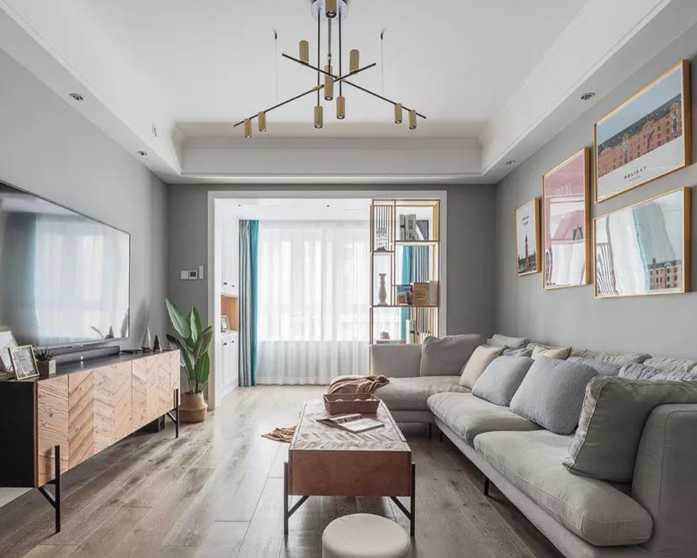 這是一套100平米的簡約北歐風格裝修案例,在有限的空間里為了滿足一家人的居住需求,以簡潔灰色調的空間基礎,搭配舒適輕松的家居、鮮艷活潑的軟裝掛畫,帶來一個簡雅大方的浪漫與愜意感。