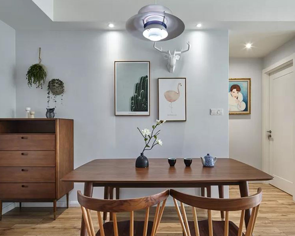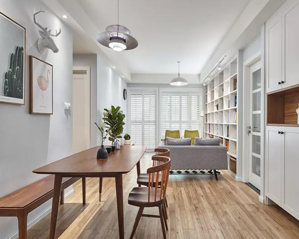 這套僅有91平米的二房中,居住者是溫情舒適的三口之家,一家人都喜歡閱讀,以清新舒適的北歐風格為基調,在木質感的家具布置下,營造出一個輕松舒適的閱讀休閑的居家時光。