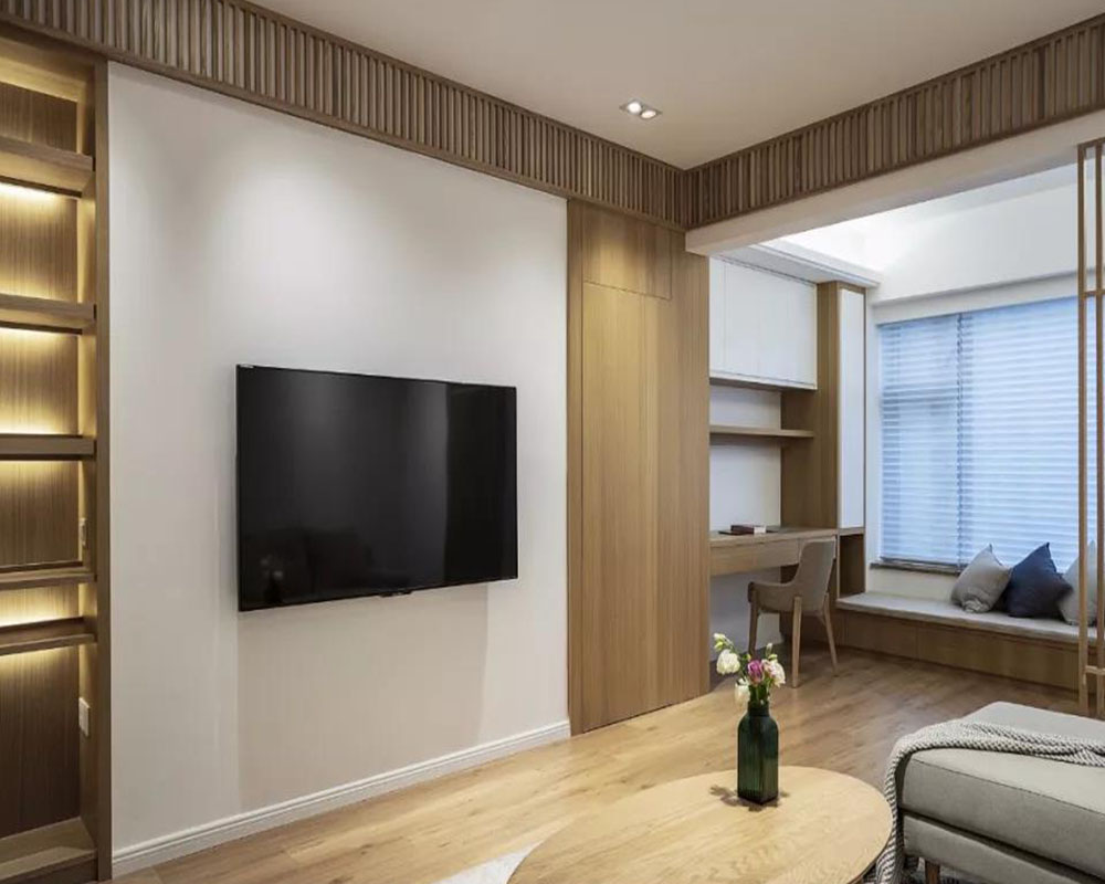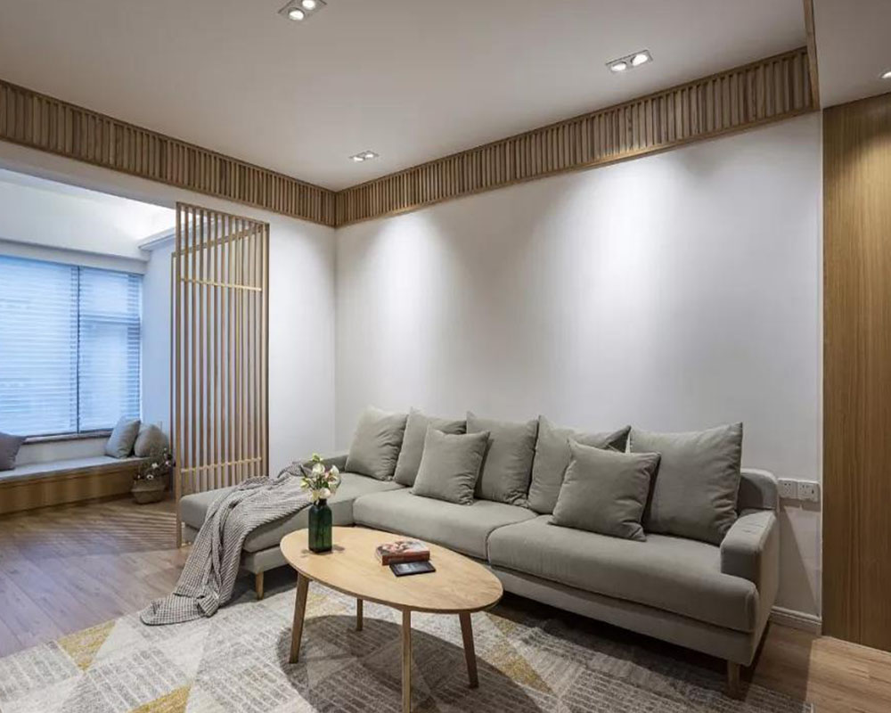 斷離舍作為日式裝修的主旨精神,在這套100平米的房子裝修中,以簡(jiǎn)潔大方的日式風(fēng)格為硬裝基礎(chǔ),并加入了大面積的原木護(hù)墻板與家居,結(jié)合上輕松自然的軟裝搭配,帶來(lái)的是一種簡(jiǎn)潔輕松的自然氣質(zhì)感。